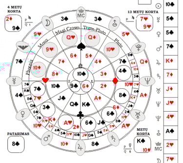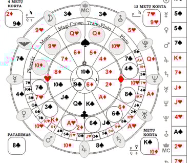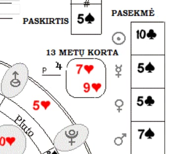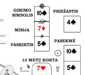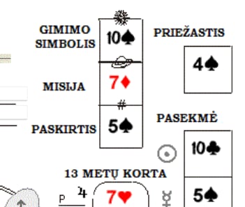 13, 4 ir metų ciklo kortos parodys koks bus periodas ir į ką reikėtų atkreipti daugiausia dėmesio. Taip pat labai svarbi įspėjimo korta.