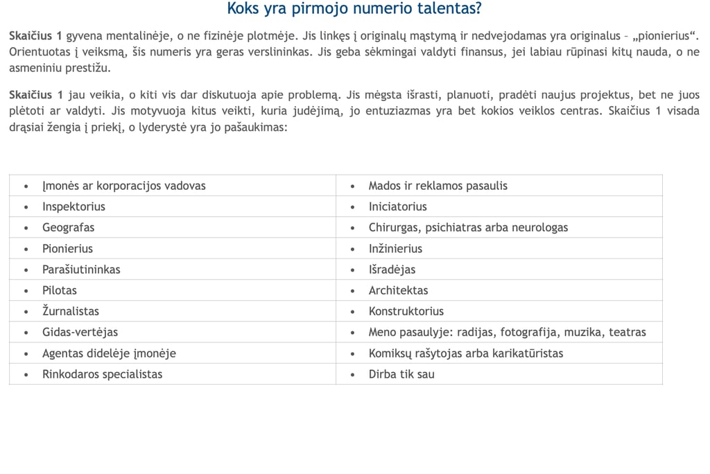Skaičius 1 mėgsta: