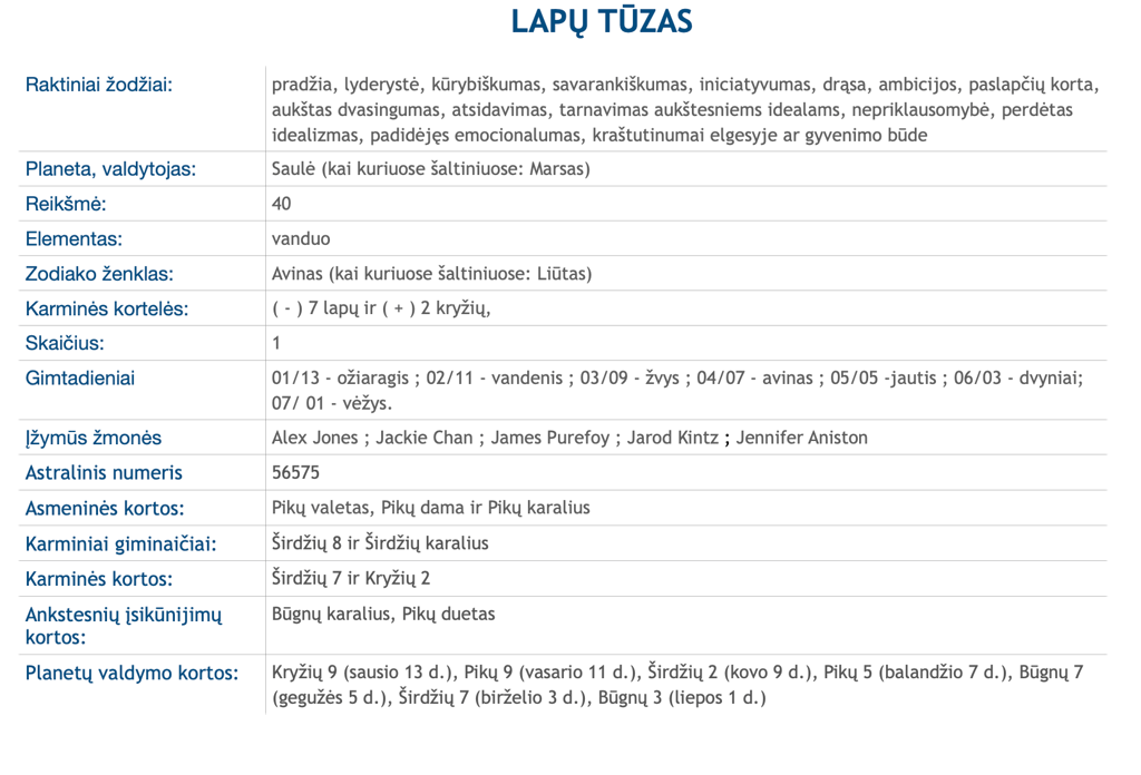Tačiau toks žmogus vargu ar leisis į beprasmius ginčus su oponentais. Jei jis matys, kad dauguma komandos narių linkę laikytis priešingos nuomonės, jis tylės ir neįsivels į bėdą, o liks prie savo nuomonės. Pikų tūzo įtakoje gimęs žmogus paprastai pasižymi geraširdiškumu. Jis visada mielai padeda aplinkiniams, jei ne pinigais, tai bent išmintingais patarimais. Šios kortos atstovai turi įgimtą išmintį ir moka pasirinkti tinkamus žodžius, kad aiškiai ir suprantamai išreikštų savo mintis. Todėl jie dažnai tampa teisininkais, taip pat psichologiniais konsultantais.